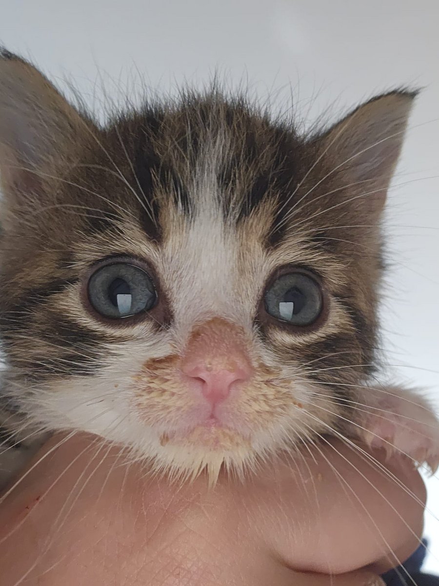 Er wurde - wie auch seine Brüder Cookie und Krümmel - winzig klein und ohne Mama gefunden. Merlin war der Erste – kaum zwei Tage alt, als er am 27.08.2025 entdeckt wurde. Dank liebevoller Handaufzucht hat er sich zu einem fröhlichen, neugierigen und verschmusten Jungkater entwickelt.